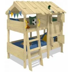 WICKEY Lit Enfant, Lit Superposé Crazy Ivy Avec Toboggan Jaune/vert Pomme Lit En Bois 90 X 200 Cm
