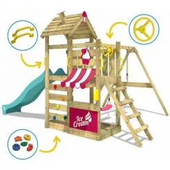 Alors que les premiers rayons de soleil annoncent le dĂ©but d’un nouveau jour, les petites amies grimpent sur le mur d’escalade jusqu’Ă la plate-forme du grandiose CherryFlyer de Wickey. Le volant bien en main, les filles s’envolent vers le doux parfum des arbres fruitiers jusqu’Ă ce qu’elles dĂ©couvrent une Ă©tincelle rouge dans le houppier des arbres. « Ça doit ĂŞtre de dĂ©licieuses cerises ! » Elles sortent l’Ă©chelle d’escalade et se prĂ©parent Ă une arrivĂ©e en douceur. Sur les branches pendent les cerises les plus somptueuses et les plus rouges foncĂ©es que les petites amies aient jamais vues.