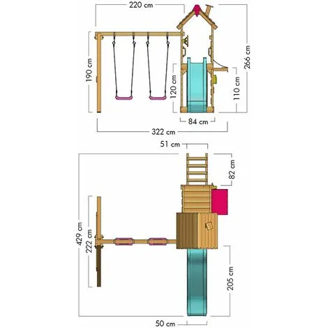 - Toboggan double vague avec raccord pour l’eau 220 cm