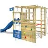 Pour les FreeFlyer, embarquement immédiat ! Décollage imminent pour les pilotes et leurs équipages amateurs d’aventure. Dès le départ le courageux équipage doit déjà passer par le mur d’escalade. Arrivé dans le cockpit, le pilote contrôle son objectif, l’île au trésor, grâce à son télescope. Pour atteindre l’île et son trésor avant le coucher du soleil, un courageux membre d’équipage se laisse descendre par l’échelle de corde qui se balance. Une fois au sol, il appuie sur le bouton. Réussi! Par le toboggan, tous les aventuriers atterrissent sur l’île au trésor. Fly, Wickey, fly… !