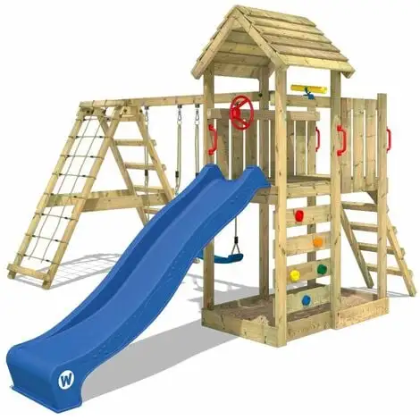 - CaractĂ©ristiques: Balançoire, Mur d’escalade, Toboggan, Bac Ă sable