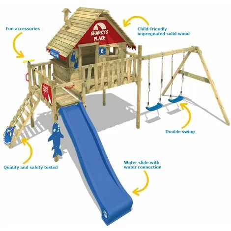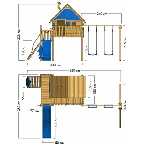 - Caractéristiques: Balançoire, Maisonnette, Toboggan