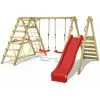 WICKEY Aire De Jeux Portique Bois Smart Camp Avec Balançoire Et Toboggan Anthracite Cabane Enfant Exterieur Avec Bac à Sable