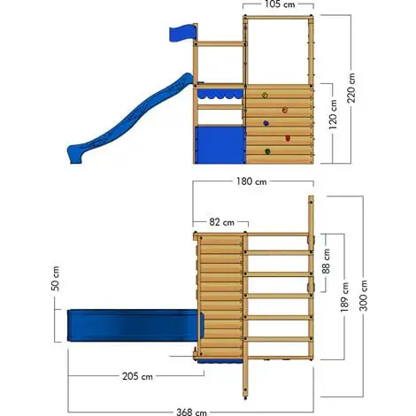 - CaractĂ©ristiques: Mur d’escalade, Toboggan