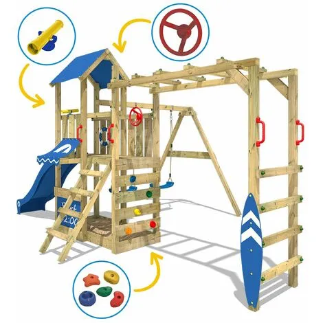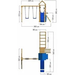- CaractĂ©ristiques: Balançoire, Mur d’escalade, Toboggan, Bac Ă sable