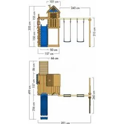 - CaractĂ©ristiques: Balançoire, Maisonnette, Mur d’escalade, Toboggan, Bac Ă sable