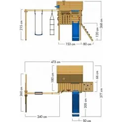 - Caractéristiques: Balançoire, Maisonnette, Toboggan