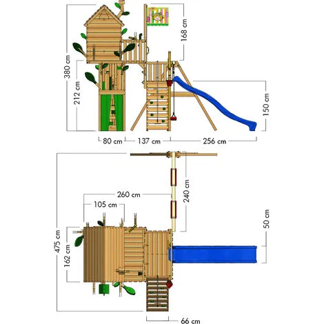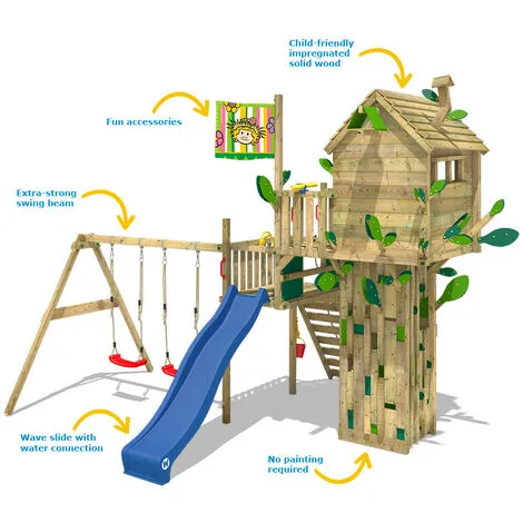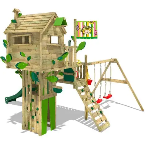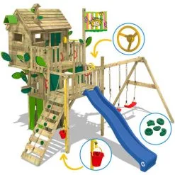 WICKEY Aire De Jeux Portique Bois Smart Treetop Avec Balançoire Et Toboggan Vert Cabane Enfant Exterieur Avec échelle D’escalade