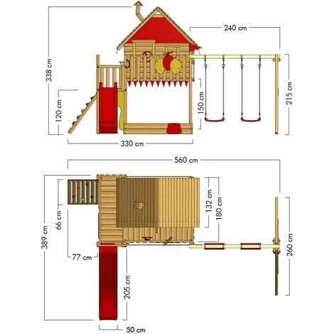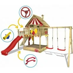 - Caractéristiques: Balançoire, Toboggan, Bac à sable
