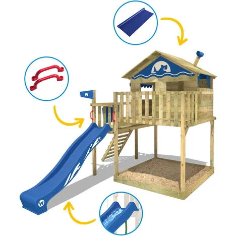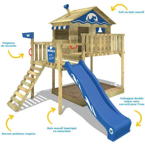 Cabane enfant sur pilotis Wickey Smart Wave avec toboggan