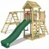 WICKEY Aire De Jeux Portique Bois TinyLoft Avec Balançoire Et Toboggan Rouge Maison Enfant Exterieur Avec Bac à Sable, échelle D’escalade & Accessoires De Jeux