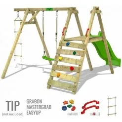 WICKEY FATMOOSE Portique Balançoire Aire De Jeux JollyJack Avec Toboggan Violet