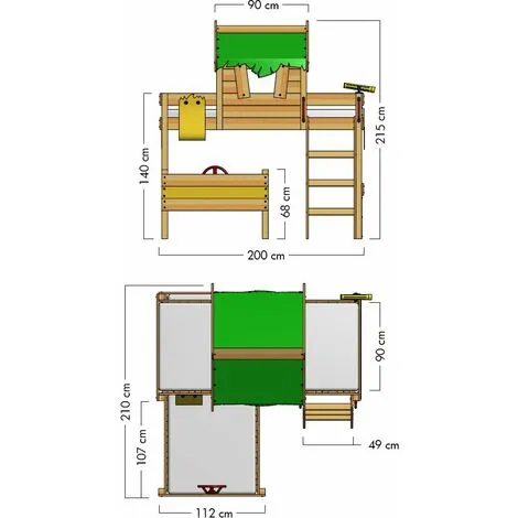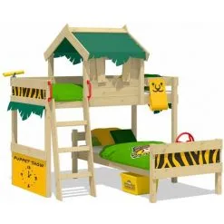 WICKEY Lit Enfant, Lit Superposé Crazy Jungle Avec Toboggan Vert Pomme/jaune Lit En Bois 90 X 200 Cm