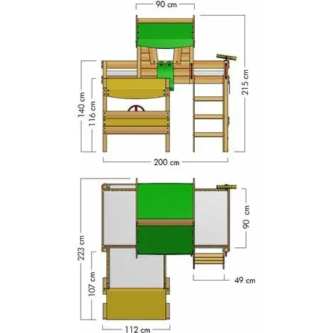 - Literie, coussins, prises d’escalade et boîte ne sont pas inclus