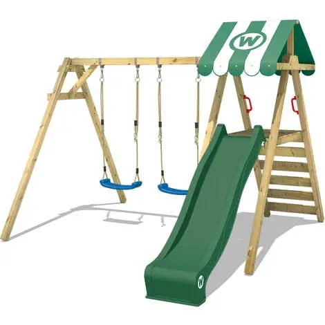 WICKEY Portique Balançoire Aire De Jeux Smart Ace Avec Toboggan Vert