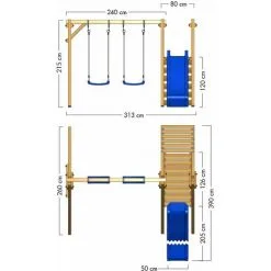 - CaractĂ©ristiques: Balançoire, Mur d’escalade, Toboggan