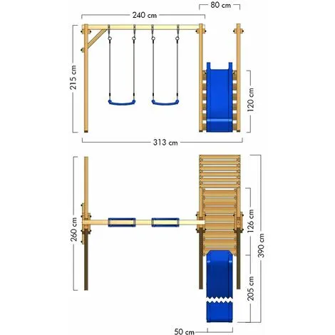 - Balançoire à ancrer dans du béton, veuillez commander les ancrages en supplément