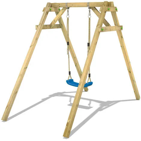 Avec la balançoire individuelle Wickey Smart One, le plaisir de se balancer est Ă©galement garanti dans les petits jardins ! Grâce Ă son montage facile, le portique de jeux intemporel est rapidement installĂ© et immĂ©diatement prĂŞt Ă l’emploi. MalgrĂ© sa petite taille, le bois Ă©quarri imprĂ©gnĂ© en autoclave assure une stabilitĂ© maximale, de sorte que le petit pilote puisse se lancer en toute sĂ©curitĂ© dans des aventures passionnantes Ă travers le royaume des nuages !