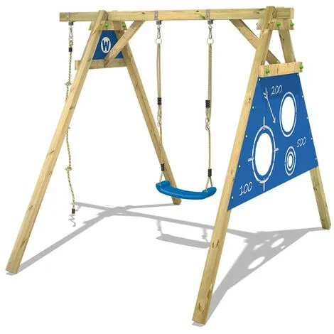 La balançoire double Wickey Smart Score sportive offre le dĂ©fi idĂ©al Ă tous les petits professionnels du football qui voient grand. Les artistes du ballon rond se livreront des duels passionnants devant la paroi de tir au but. Qui donnera le coup dĂ©cisif dans le coin supĂ©rieur ? Une concentration optimale et un contrĂ´le prĂ©cis du ballon sont pour cela nĂ©cessaires. Après la remise des prix, tous les grands moments du tournoi seront une nouvelle fois analysĂ©s en dĂ©tail lors d’une fĂŞte amusante sur les balançoires.