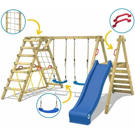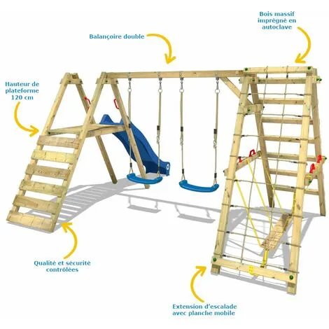 Balançoire double avec toboggan et annexe à escalader Smart Shake